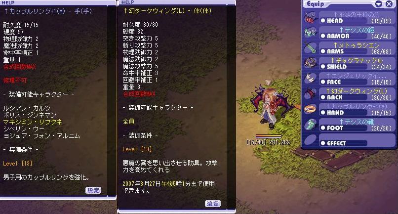 男性用にはMP+10なんかついているんだけど。。。カンストしちゃってる私には意味が無い・・・