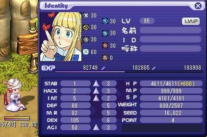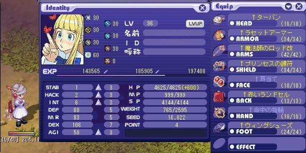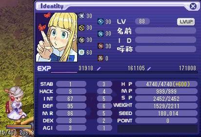 LV:90 STAB 1 HACK 2 INT 2 DEF 60 MR 77 DEX 100 AGI 47