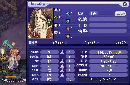 ステPの余り+今回のLvアップでもらったステPとで、Hack上げました